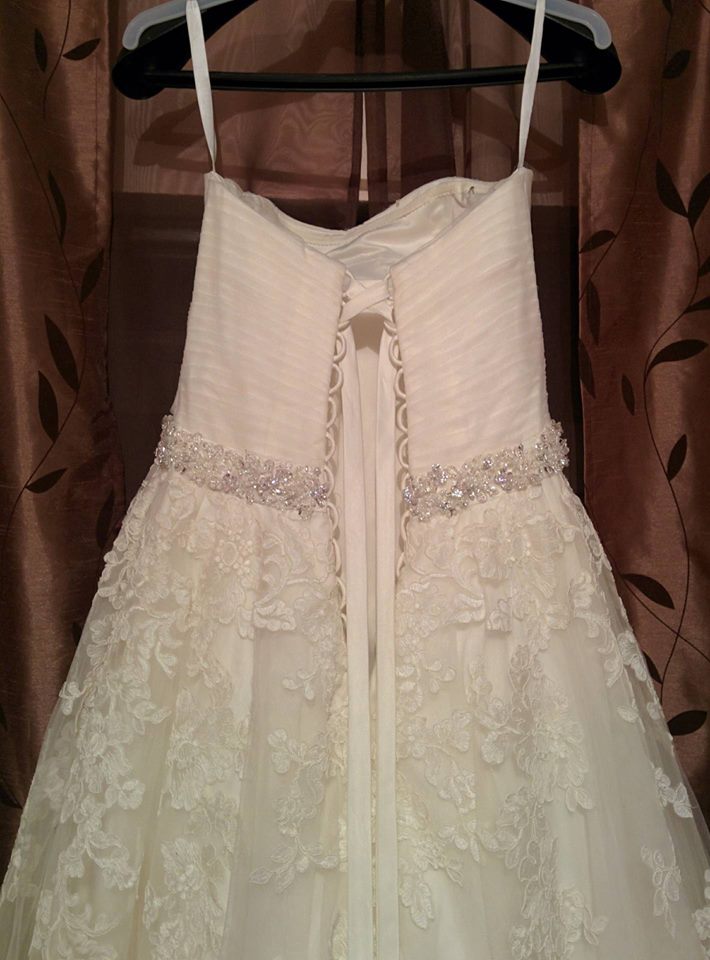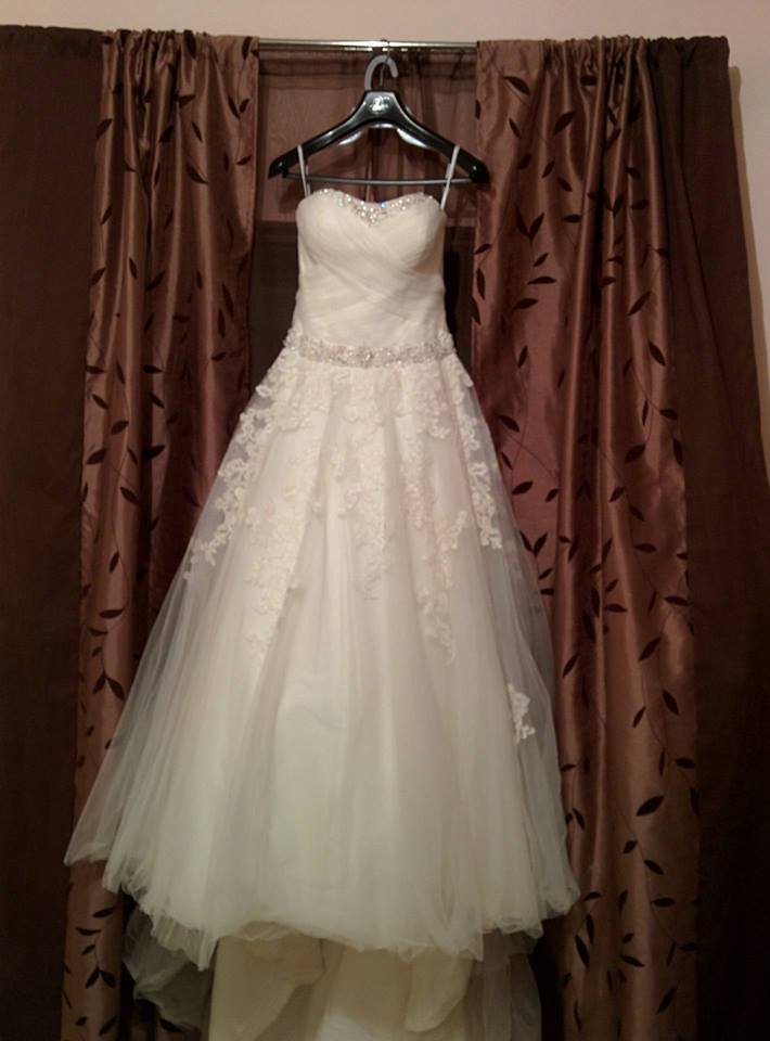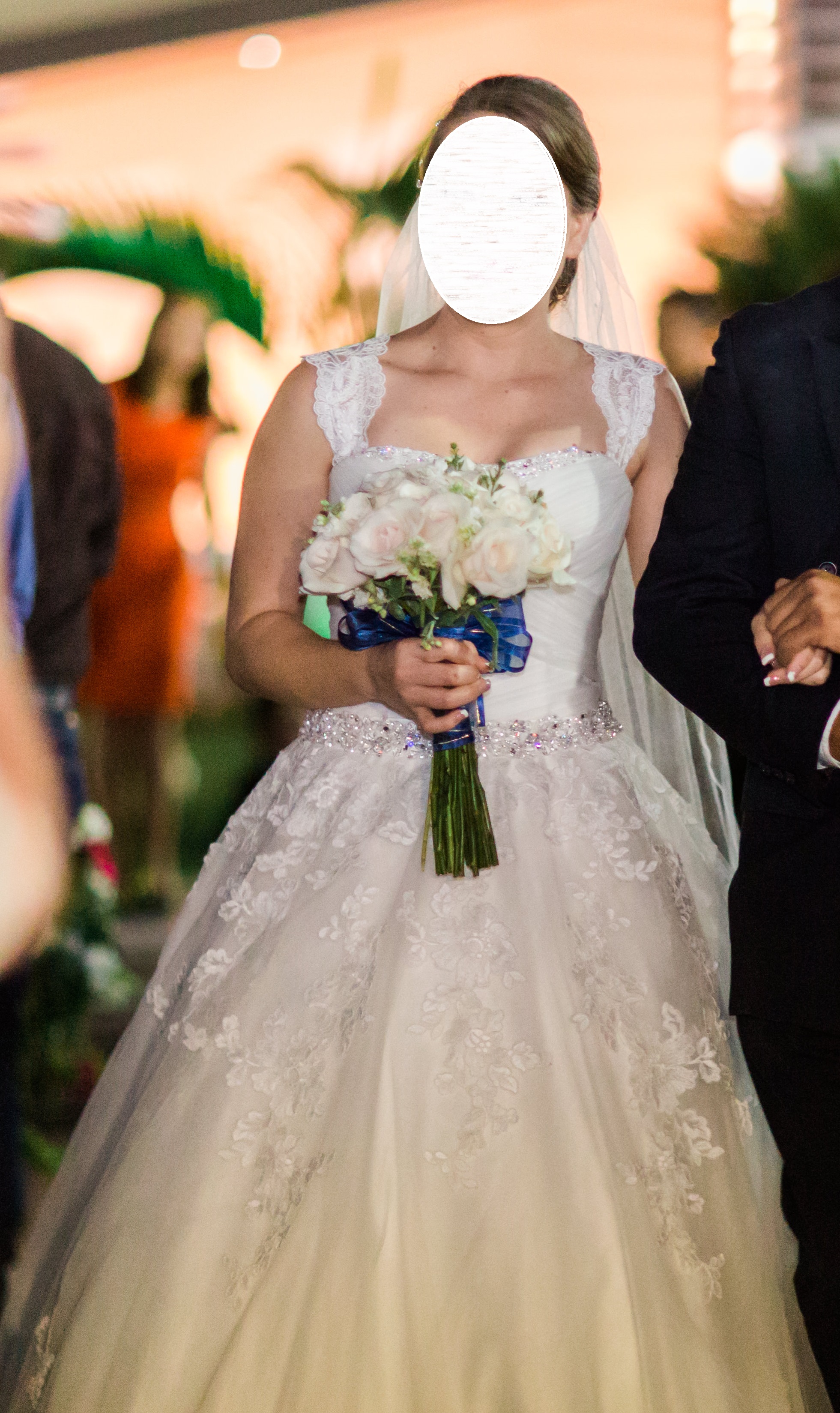 Vestido de novia de 1 año de haber sido comprado. Usado 1 sola vez. Es corte A. ES STRAPLESS, pero yo lo quise usar con torera (por esto se le hizo arreglo de ponerle unos ganchitos por dentro para sostenerla), la cual fue comprada aparte pero también va regalada con el vestido. Además lo vendo con velo y el forro. Después de usarlo, lo envié a la tintorería y se guardó. Si estás interesada puedes enviarme tus dudas, con gusto las disipo. Gracias :)