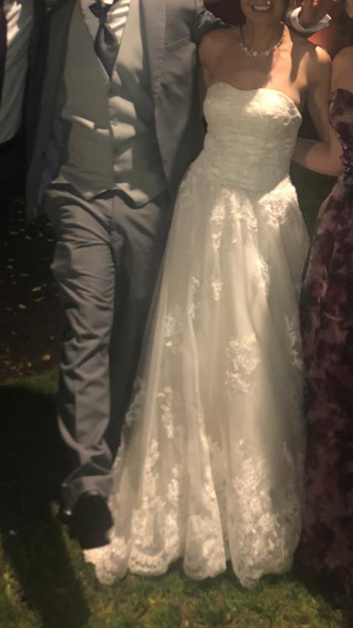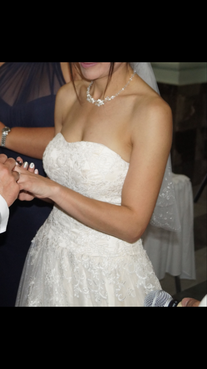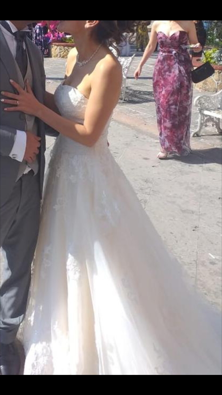 El vestido está precioso e intacto, el color está padrísimo. Mido 1.60m y peso 47kg. Lo usé con tacones de 5cm. Si te vas a casar y eres talla 0/2, te juro que no vas a encontrar un vestido así de lindo en este precio :).