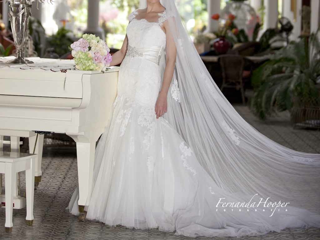 Precioso vestido de novia, usado una sola vez, esta en perfectas condiciones, incluye velo y manguitas, es talla 8 pero se hizo un ajuste a talla 6 ( puede volver hacerse grande)