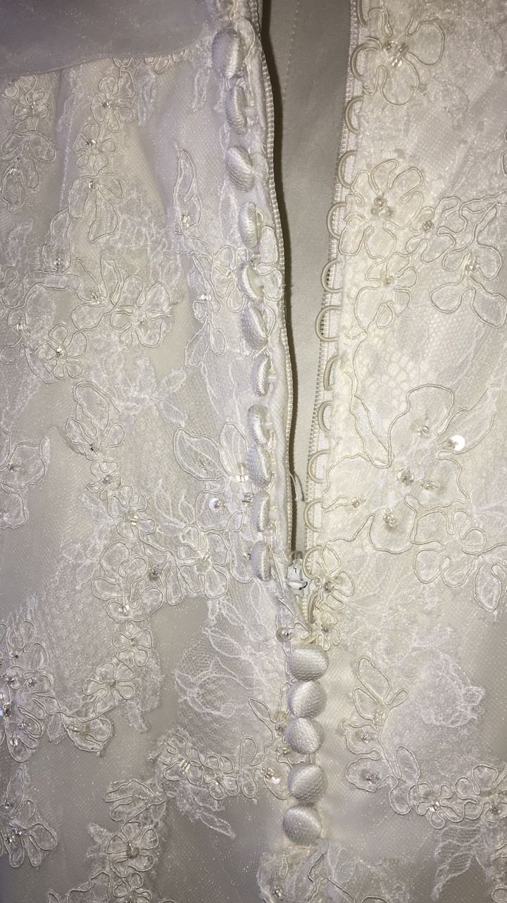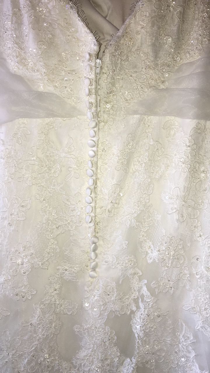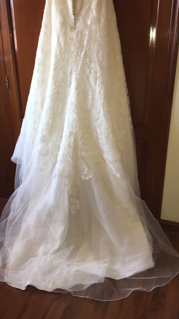 El vestido esta como nuevo, el precio incluye el velo del mismo modelo.
