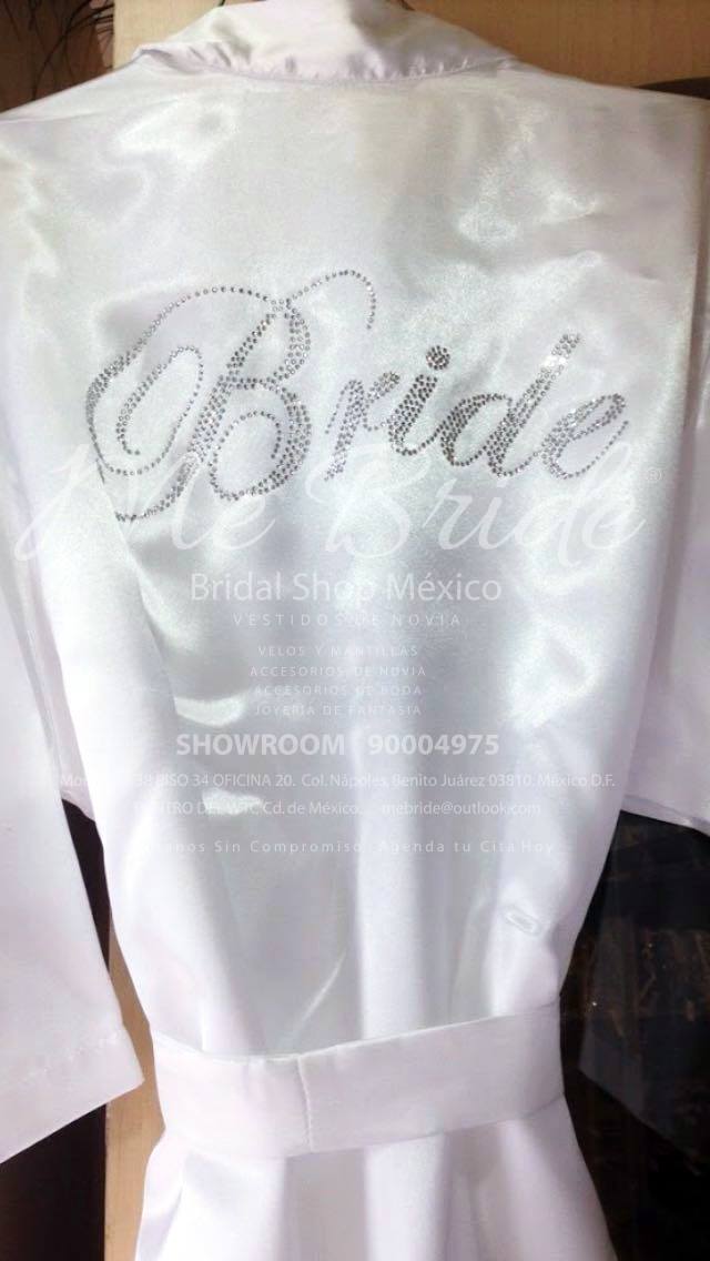 De regalo llevate una bata color ivory con la inscripción “Bride” bordada en la espalda para usar mientras te arreglas para ese día especial.