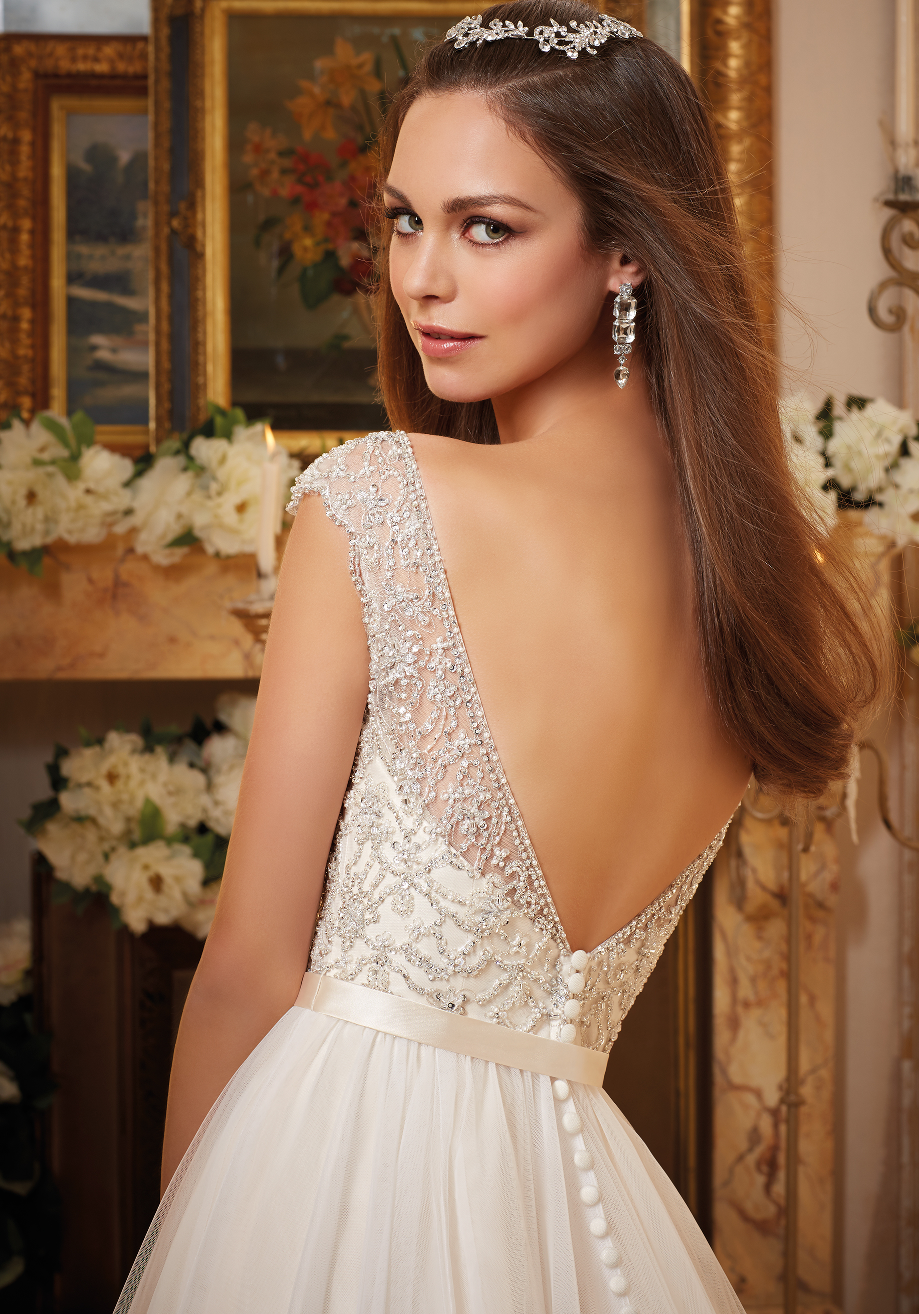 El escote en V es el que mejor figura hace y el más romántico para un vestido de novia.