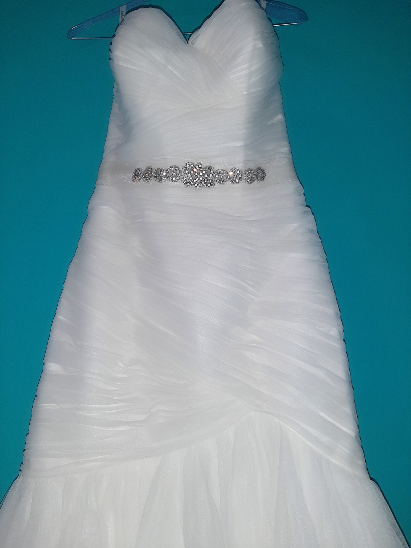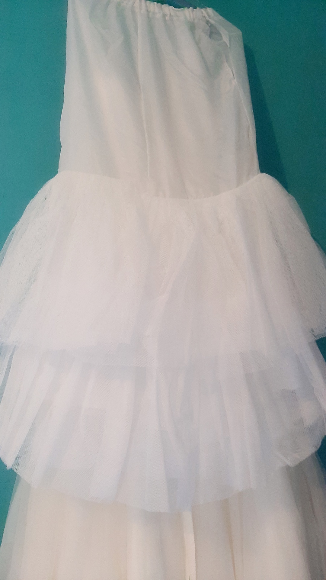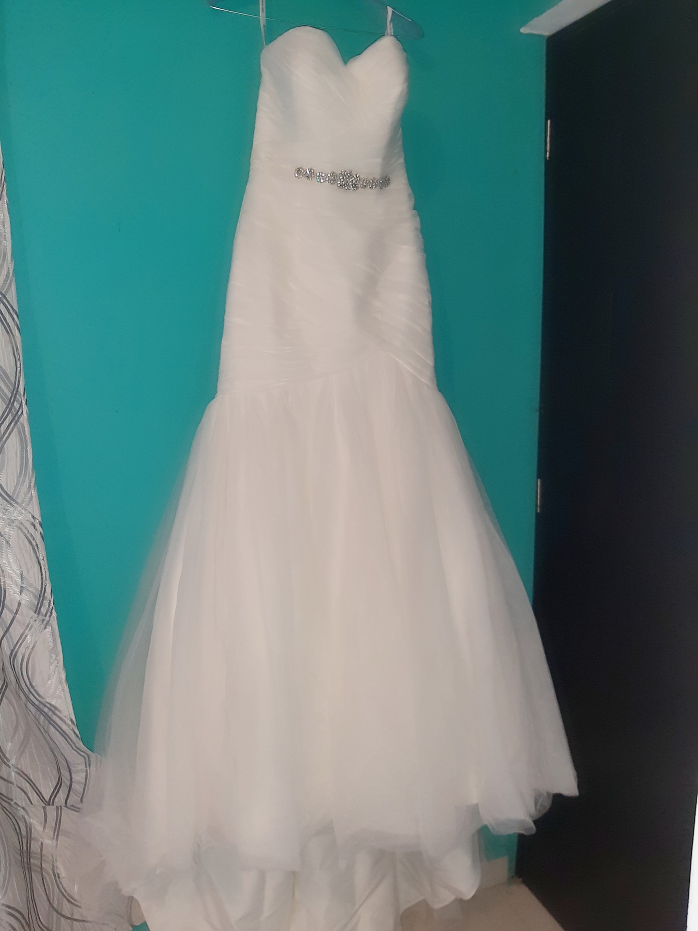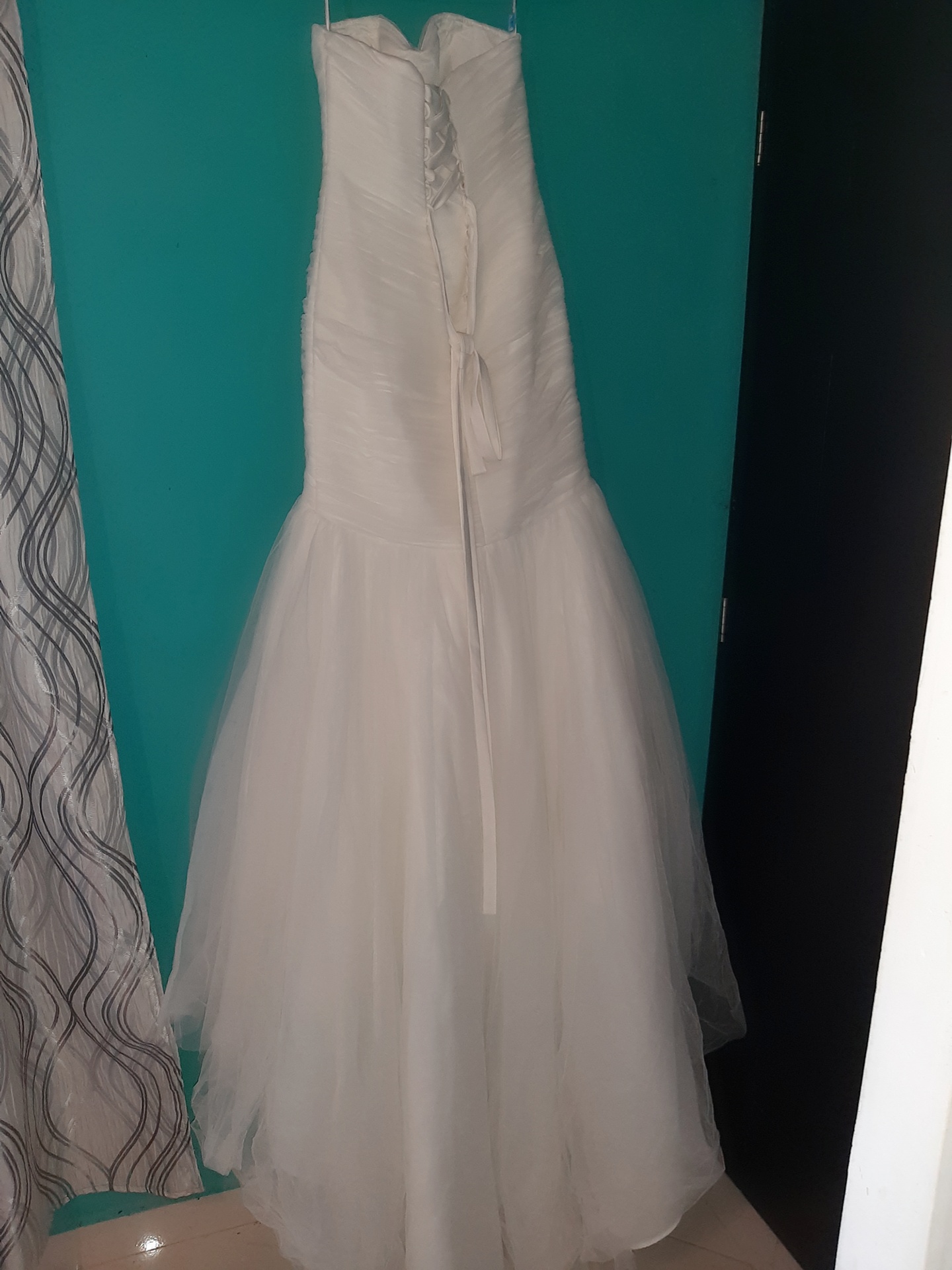 Vestido de novia corte sirena, cola sutil, escote de corazón y pedrería, color perla en talla 8 /M incluye fondo de organza para que esponje, en PERFECTAS CONDICIONES!!