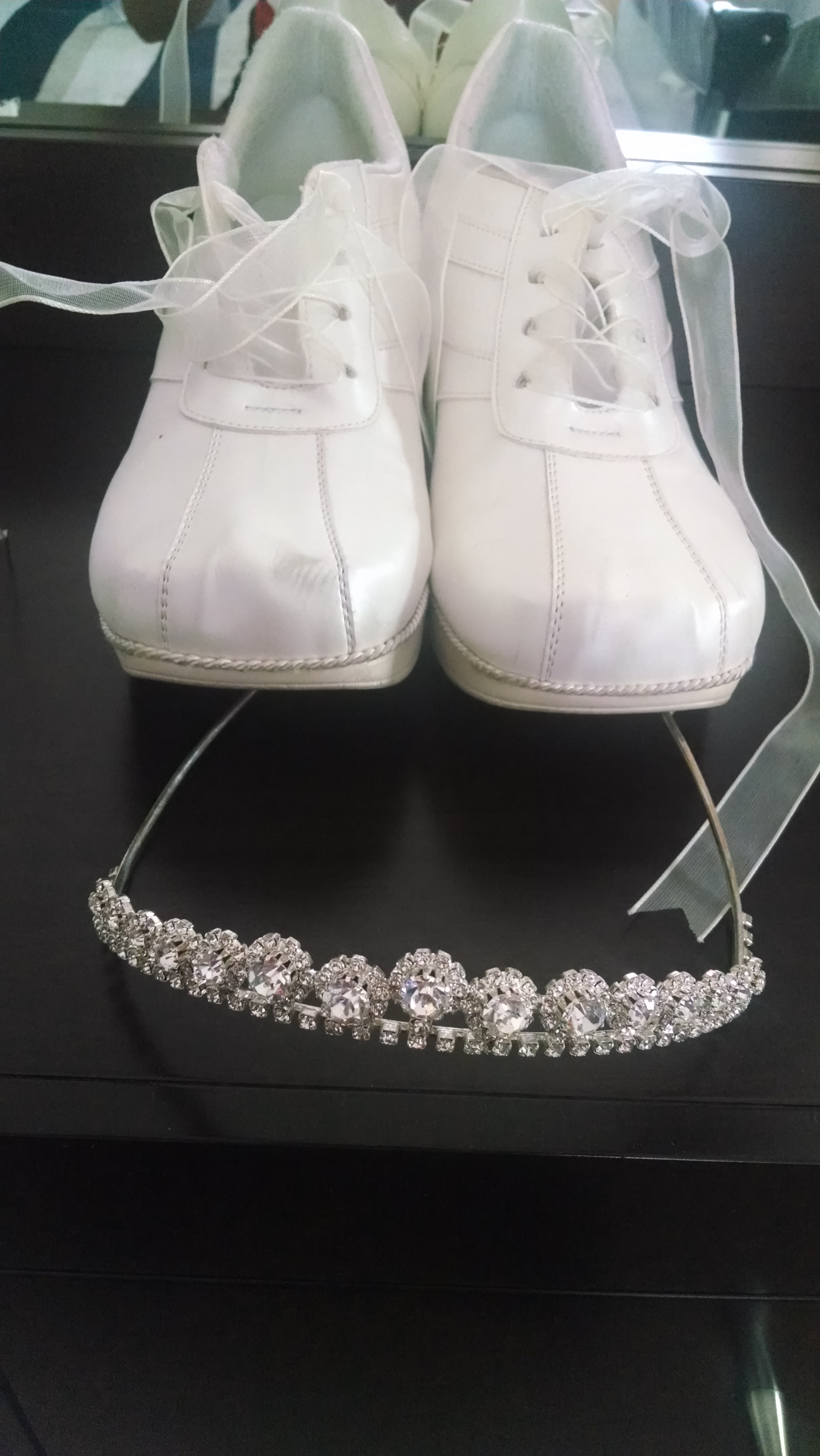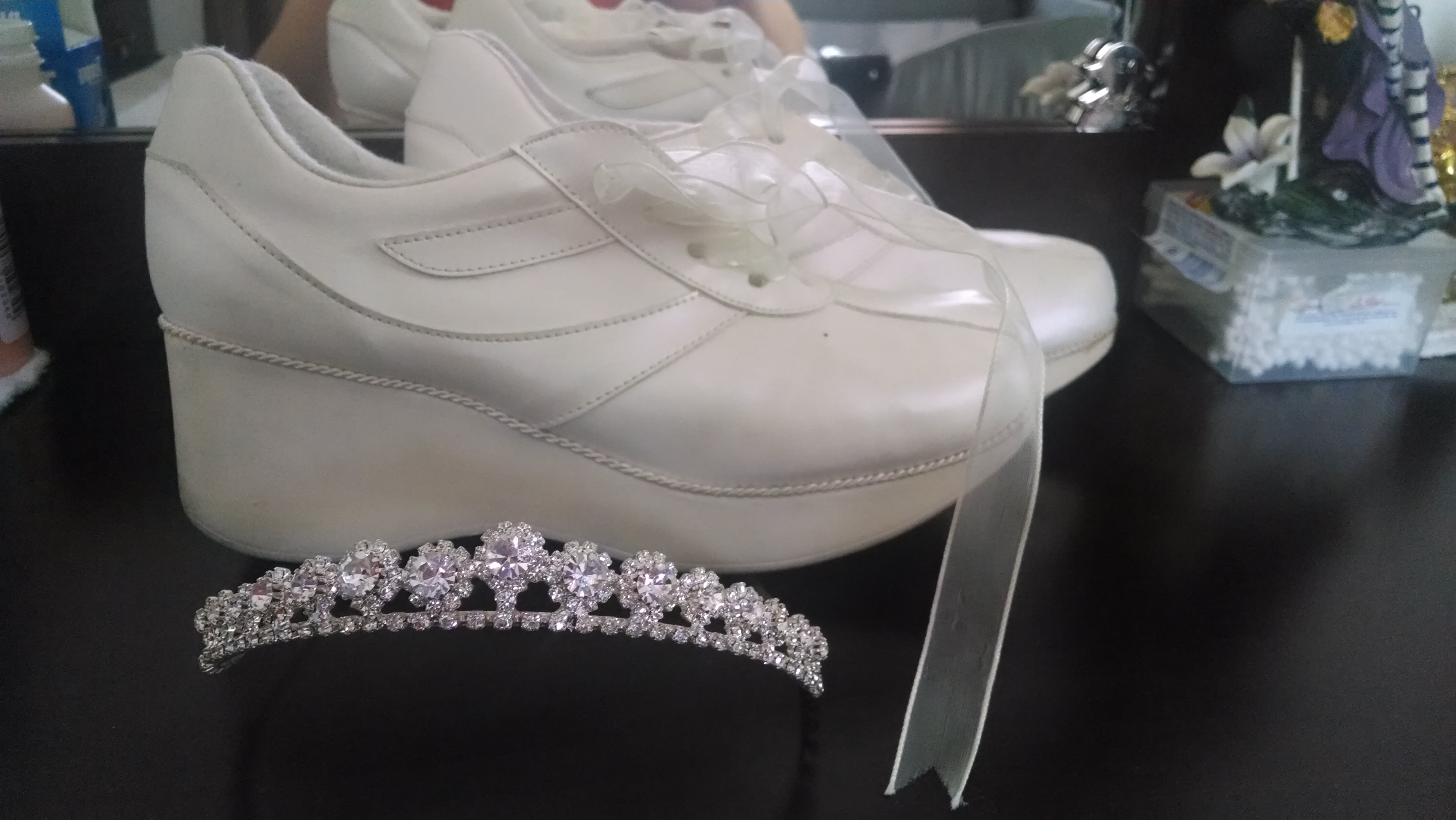 Incluye tintorería, tenis zapatilla talla 4.5 y la tiara.