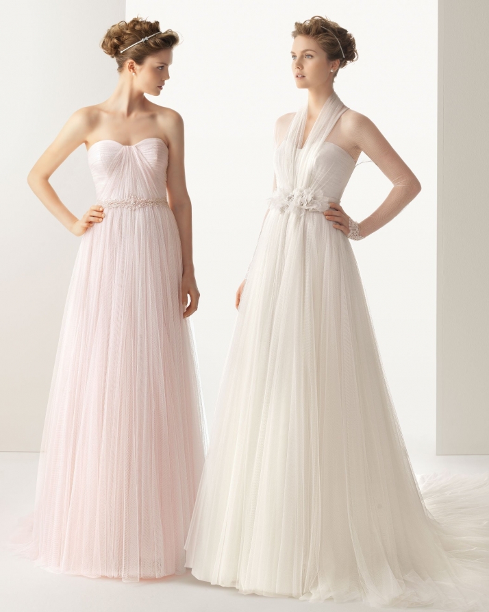 Hermoso vestido Rosa Clara, colección Soft, en tul de seda. Jamás fue ajustado por lo que se puede ajustar a cualquier talla directamente en palacio de hierro Santa fe. Incluye capa con mangas, también en tul de seda. No ha salido de la boutique.