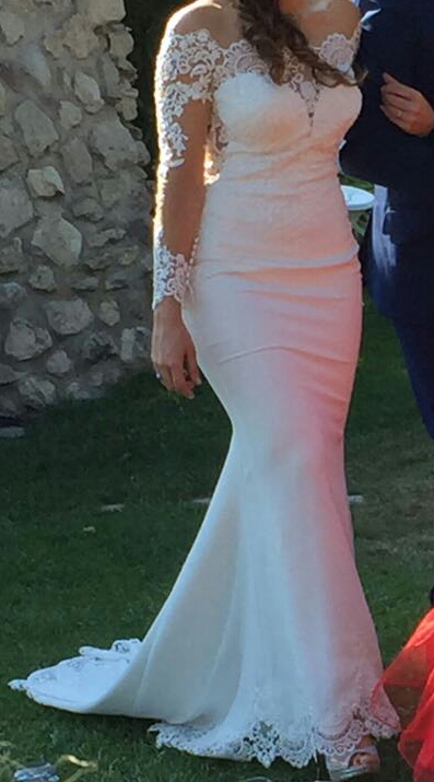 Espectacular vestido de guipur con mangas. Muy elegante y sensual.