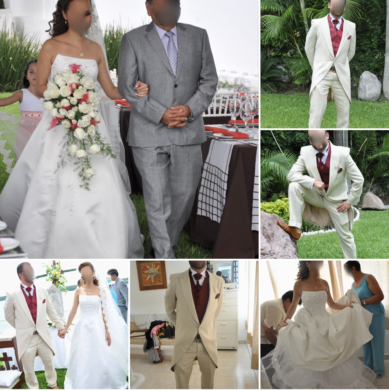 Hermoso vestido de novia, clásico, con bordados al frente, lateral y cola. Cola larga con botón para recogerse. Color perla. Ya se mandó a lavar, falta una tintorería únicamente. Sin detalles. Incluye crolina de 3 capas que se compró aparte y velo largo.