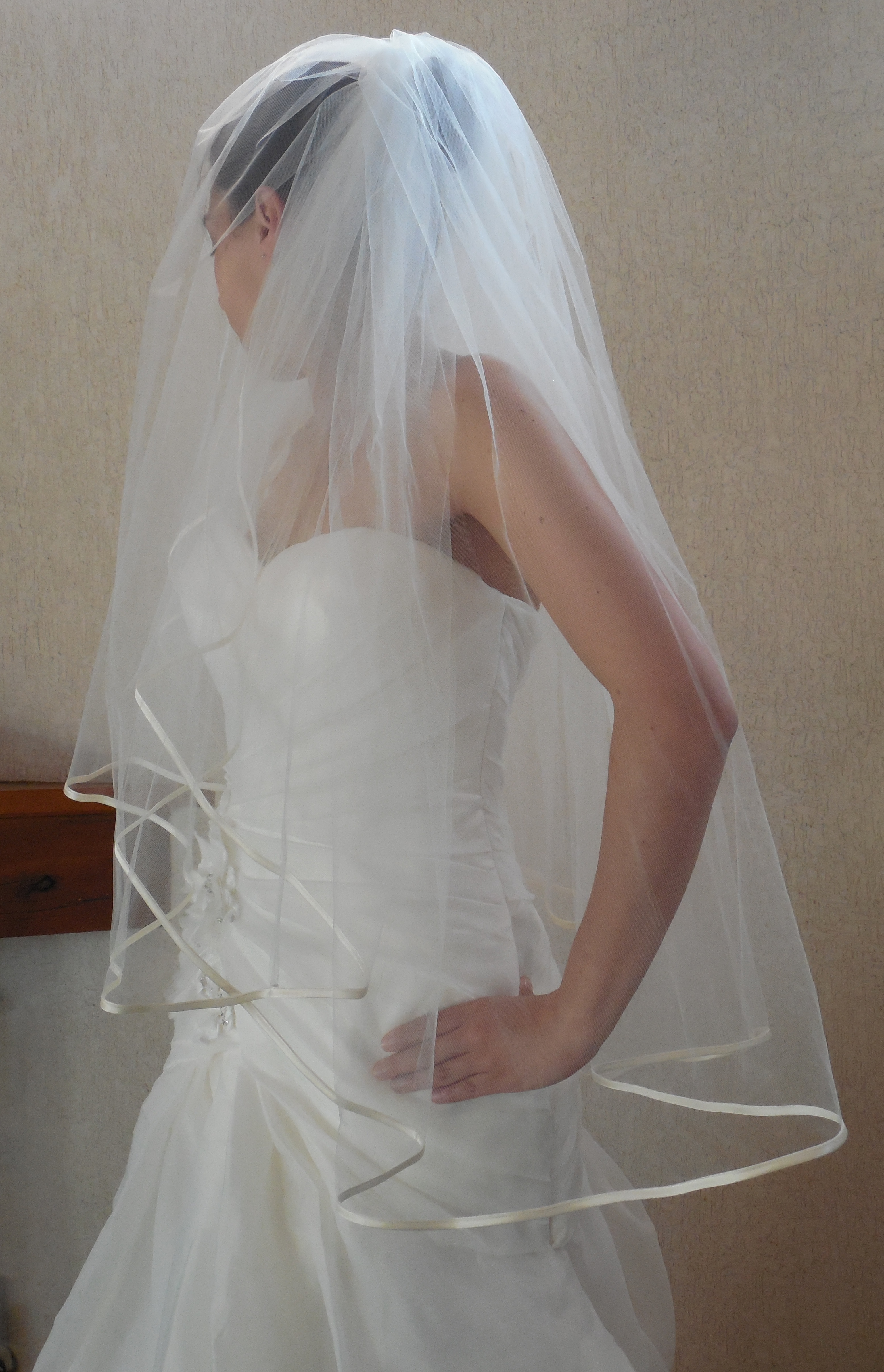 •Cauda tipo capilla (longitud: 1.5 metros aproximadamente a partir de la cintura).