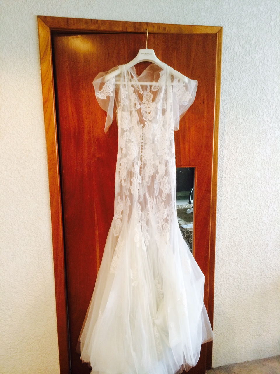 Está muy bien cuidado, lavado y guardado al vacío, esperando a otra afortunada novia para que lo use.