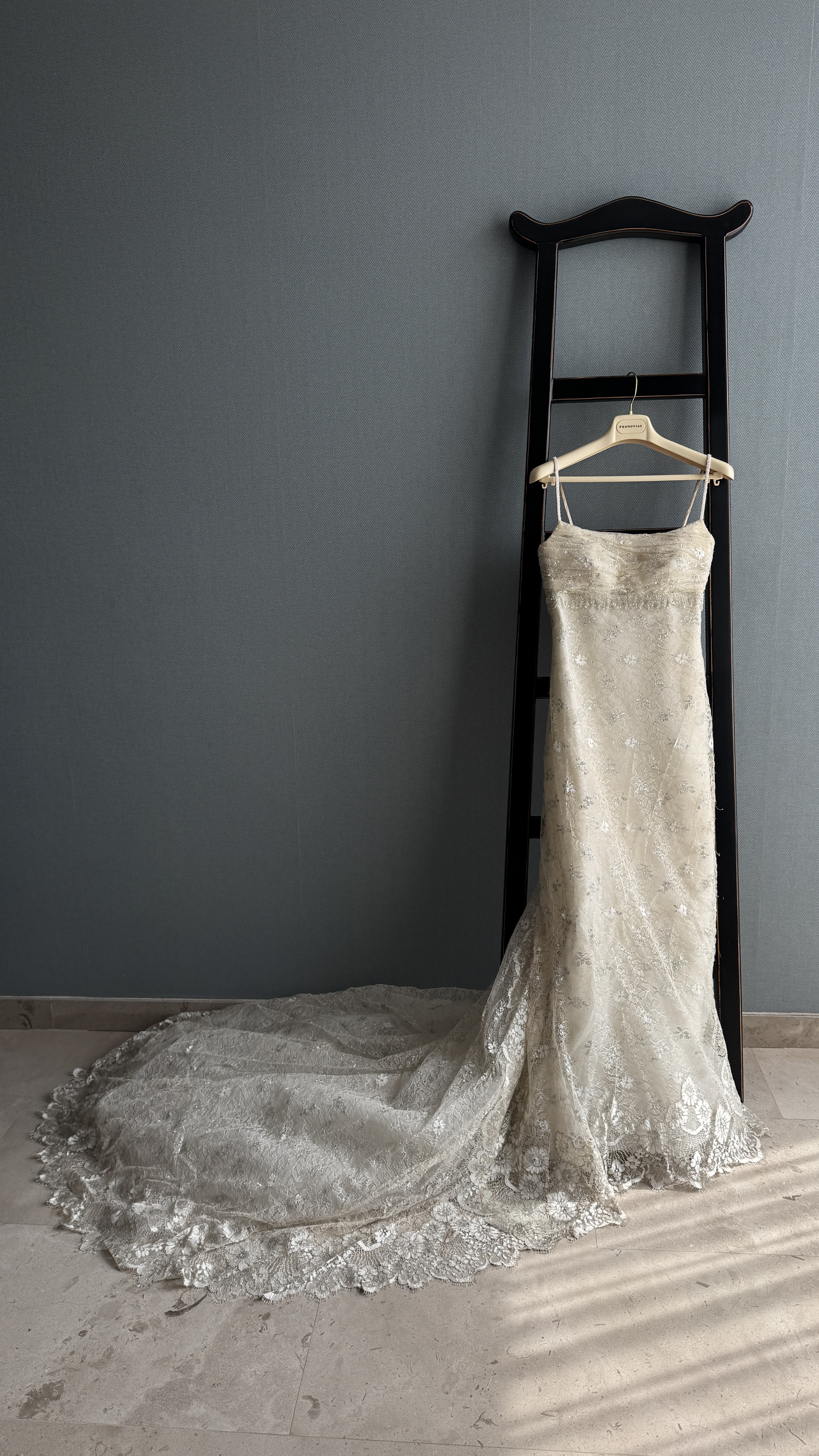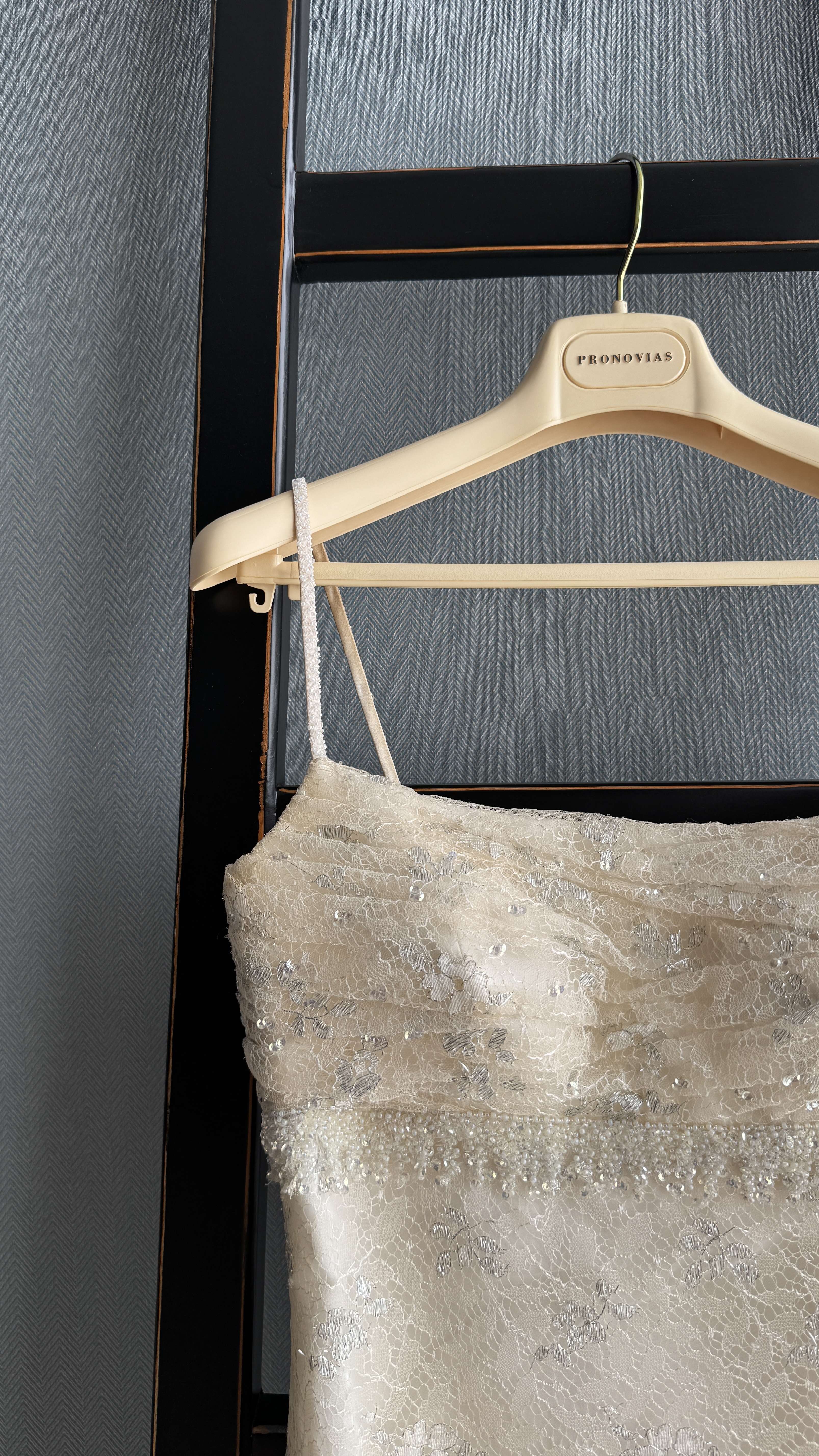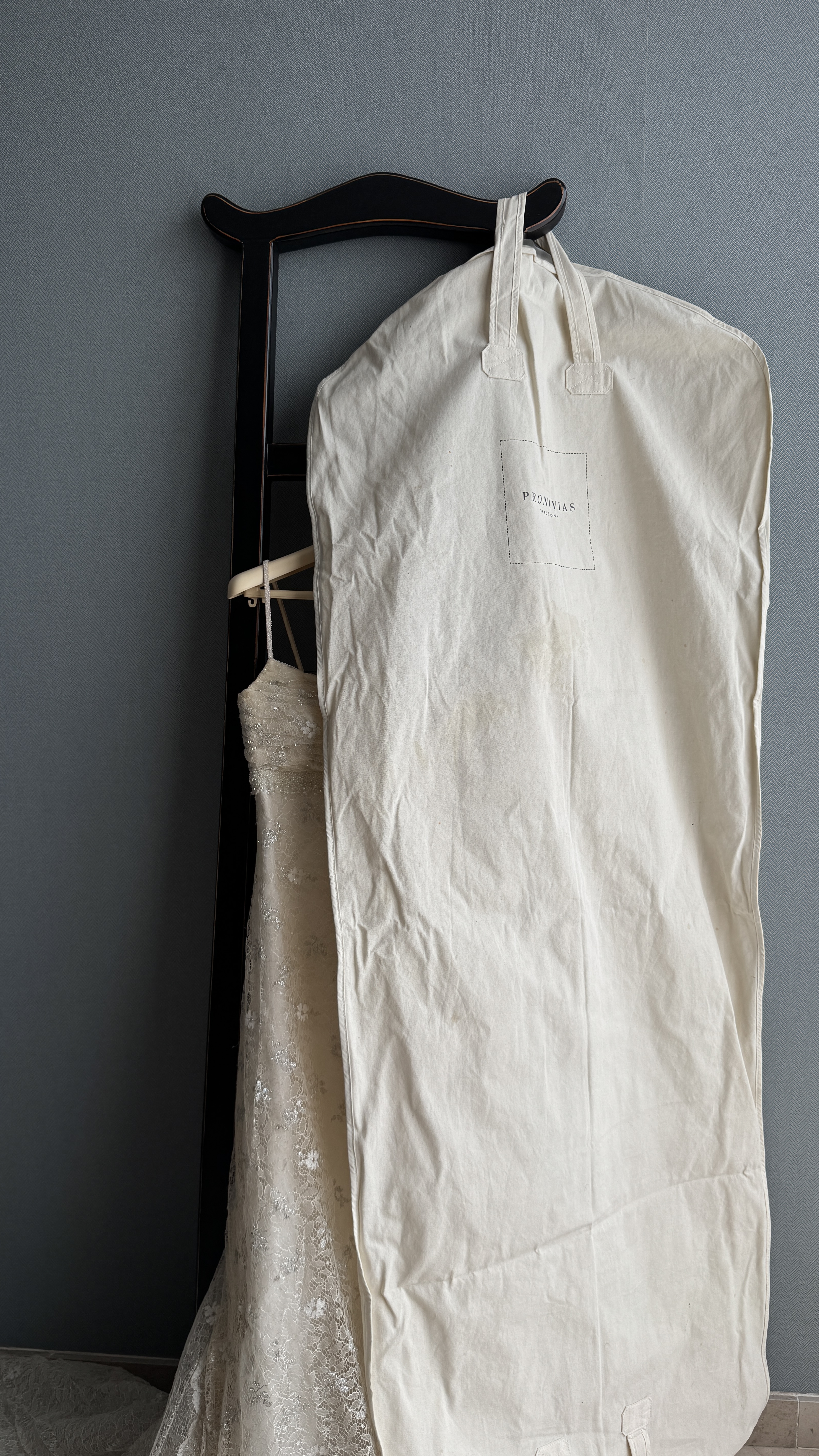 Soy la única dueña de este hermoso vestido, usado solo una vez. Lo compré personalmente en la boutique de Pronovias en Barcelona, España.