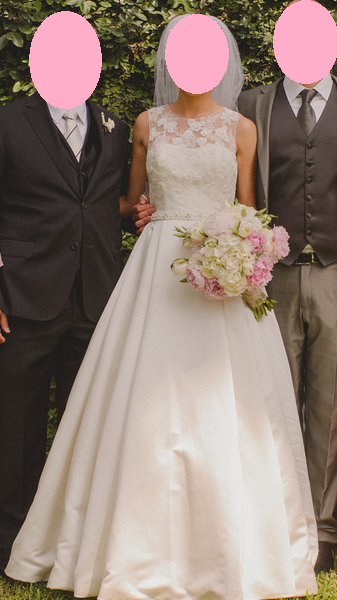 Hermoso vestido Pronovias, falda de raso y top de encaje, cinturón con aplicaciones de cristales agregado a modelo original. Perfectas condiciones, solo usado 1 vez.