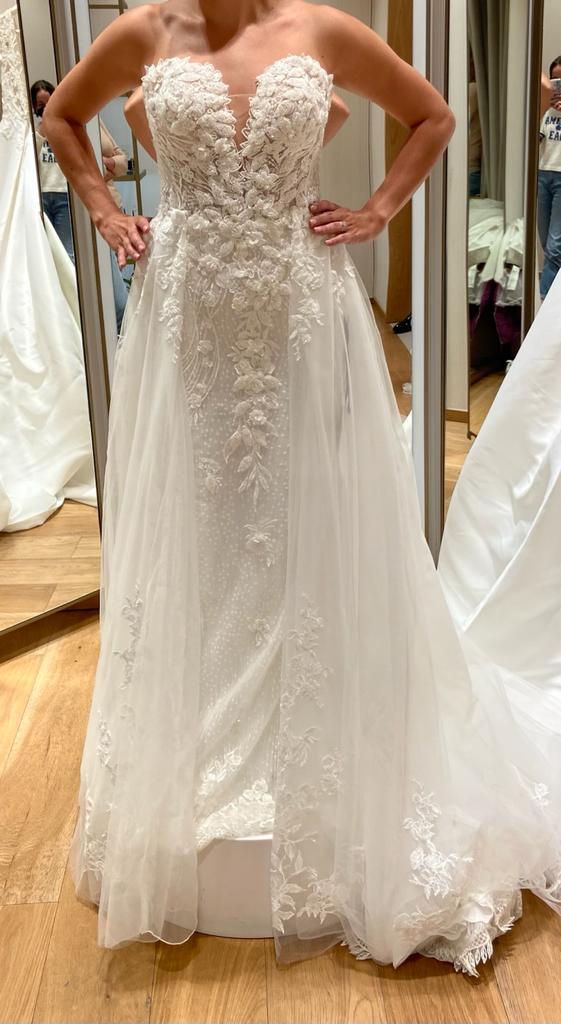 El precio incluye la sobrefalda, que puedes usar para la ceremonia, te la quitas y se ve totalmente diferente. Es un sueño de vestido.