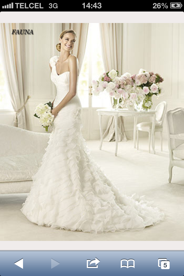 El vestido es nuevo está en perfectas condiciones. El modelo original es Fauna de Pronovias 2013, solo le quite el tirante. Los arreglos los hice en la misma tienda de Pronovias. La tela es organza muy bonita de color blanco natural. El vestido está en su estuche original aún con su etiqueta y botones de repuesto.