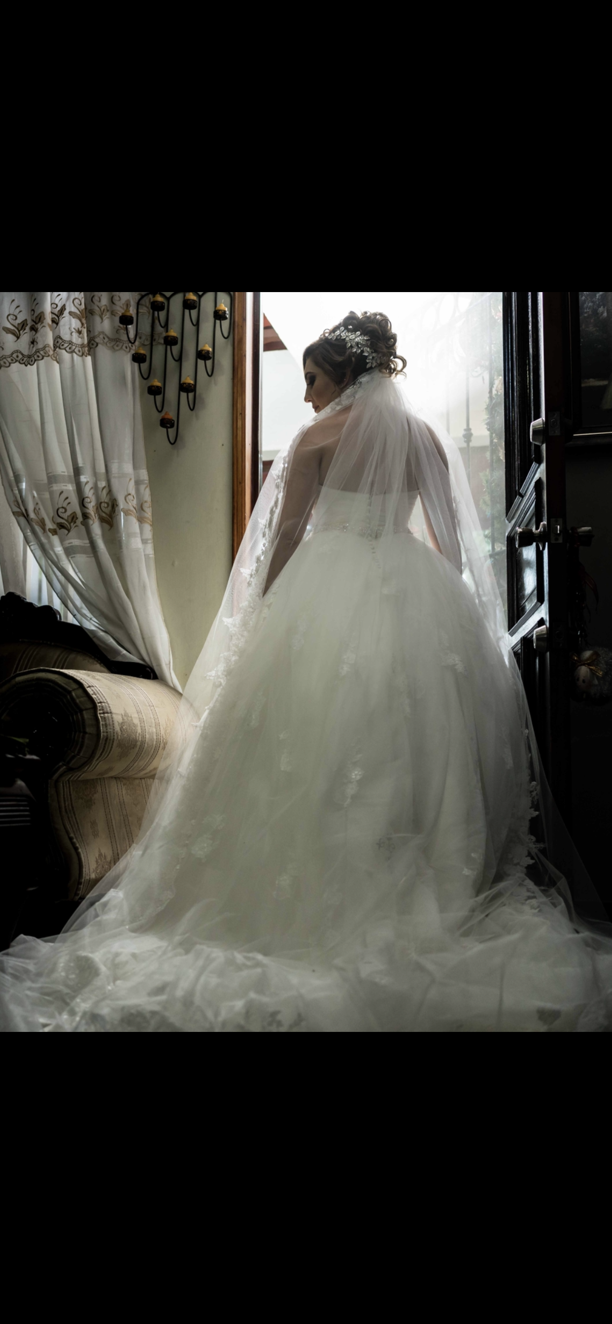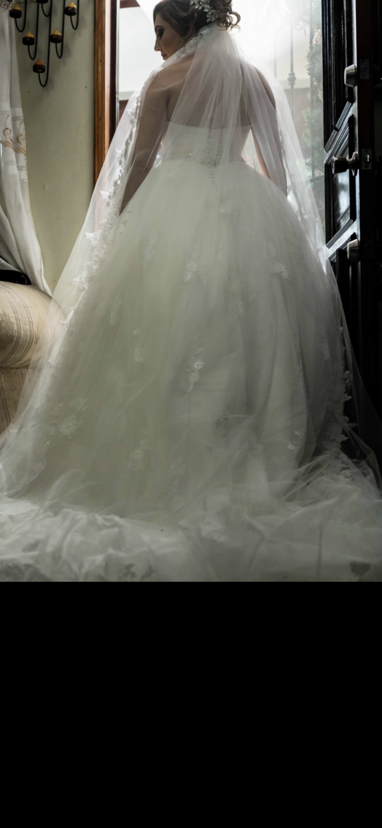 Vendo hermoso vestido de novia su antigüedad es de 7 meses, ya está listo para uso es de la tienda RAFFAELLA, talla 7 color Ivory con detalles bordados el precio total del vestido con todo y la mantilla bordada larga (2mts aprox) fue de 24000. Yo solo pido 15 por ambas cosas !!