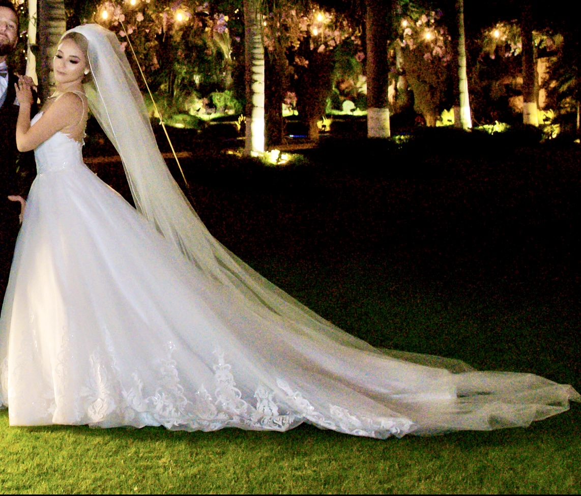 El precio incluye el velo como se muestra en una de las fotos y la crinolina.