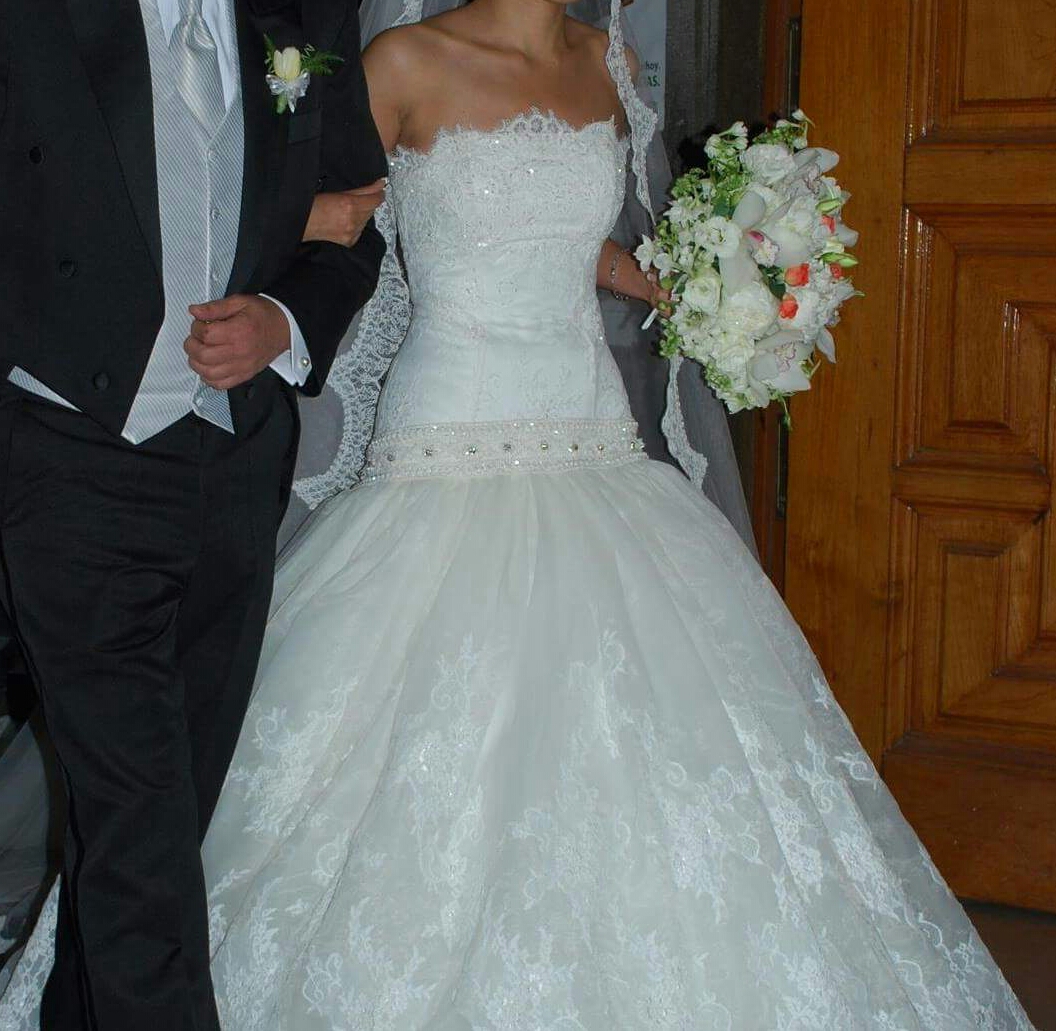 Vestido muy elegante y delicado por el encaje, perfectas condiciones, se ajusta a tu cuerpo y te hace una gran silueta. Se puede subir o bajar una talla. Incluyo el cancan o crinolina específica del modelo para darle un gran volumen.