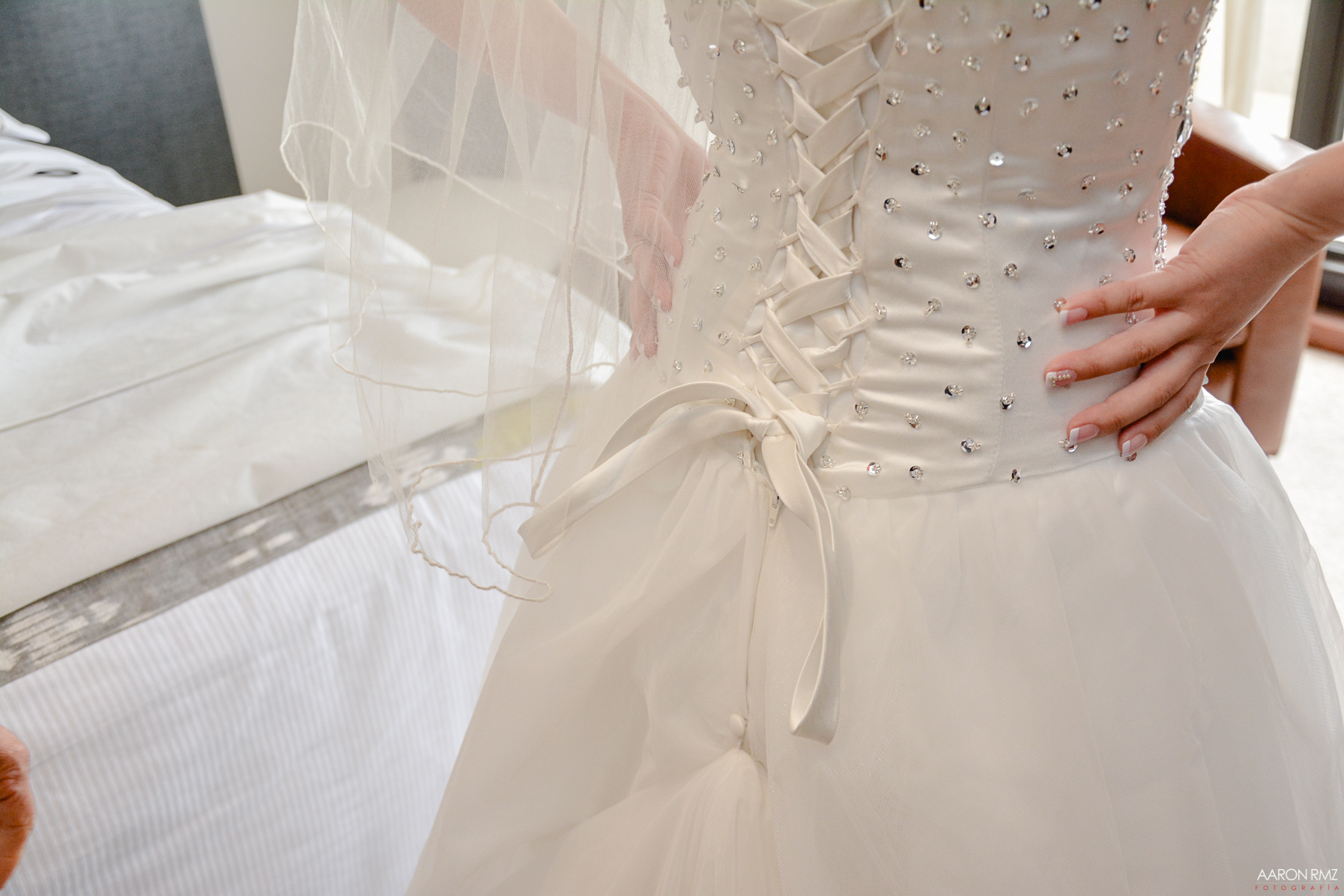 Detalles traseros. Cordones, espalda al aire