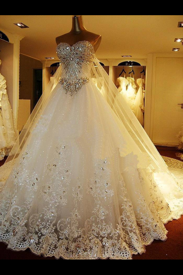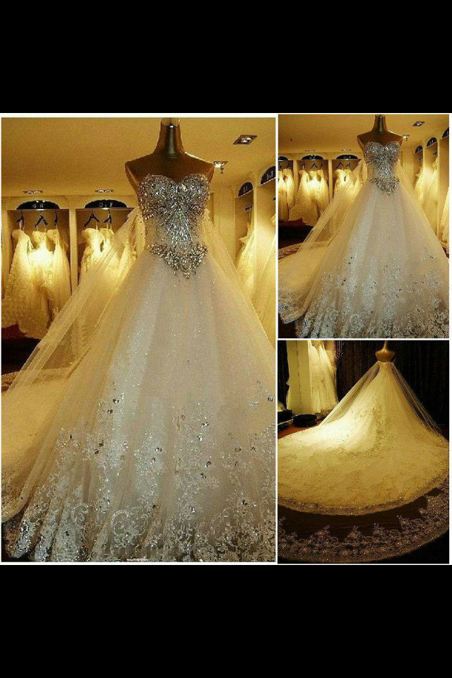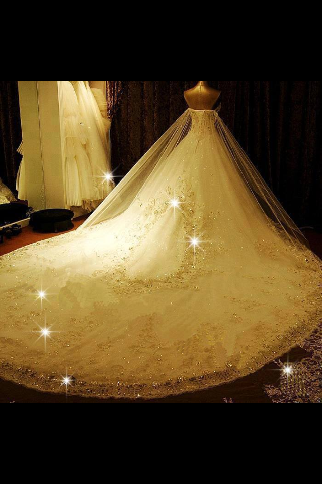 Hermoso y cómodo vestido, la cauda comienza desde media espalda del vestido y se extiende alrededor de todo el atuendo. Tiene detalles destellantes en el decorado de encaje que lo circunda. El talle del vestido está cubierto por cristales y cuentas brillantes de igual forma. Solamente fué usado por 10 horas por lo que se encuentra en muy buenas condiciones
