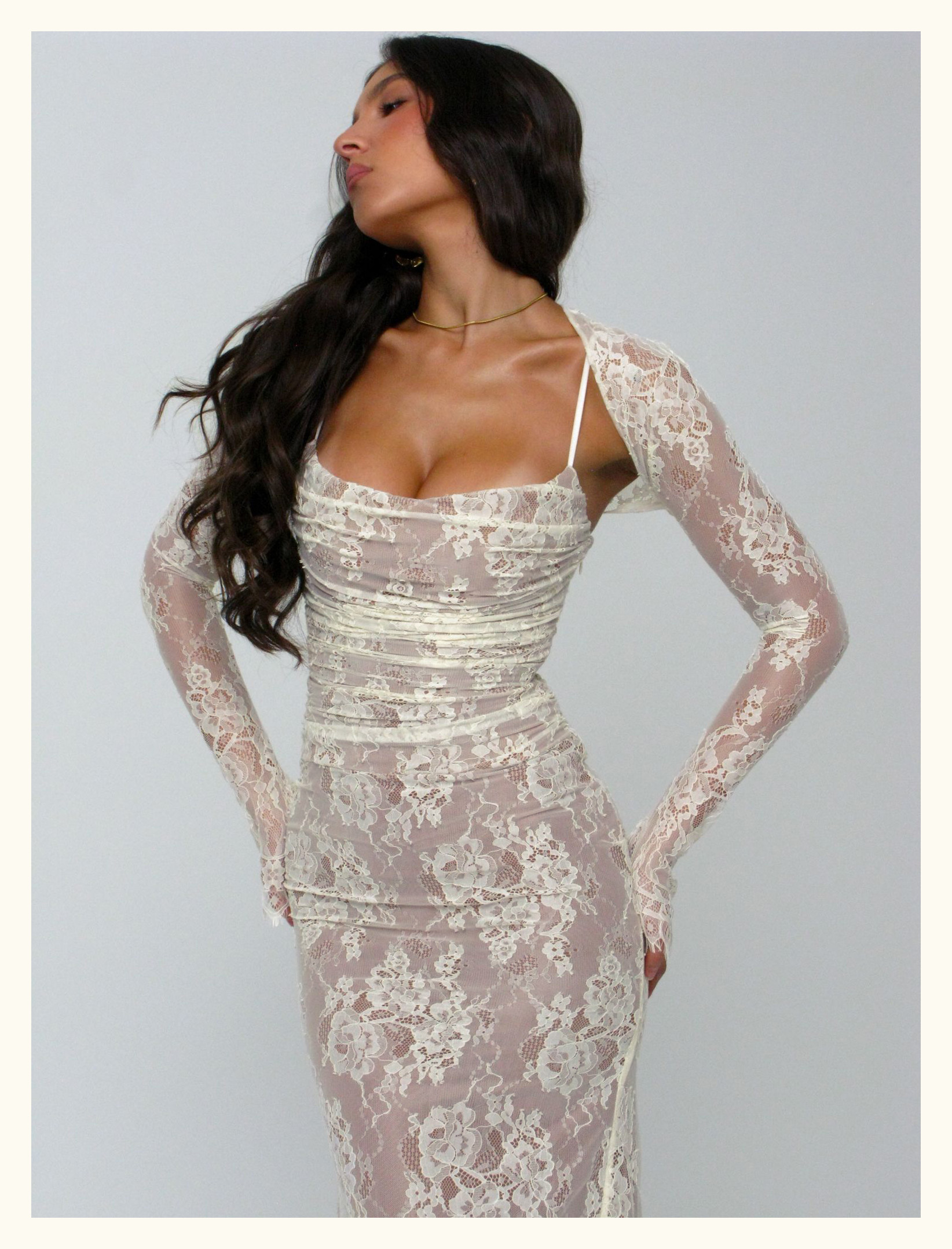 Elegante y sofisticado, el vestido Artemis de House of CB es una pieza exclusiva que realza la figura con su diseño ajustado y femenino. En un delicado tono Crema Vintage y confeccionado en encaje de alta calidad, este vestido es perfecto para ocasiones especiales. Ideal para quienes buscan un look refinado y atemporal. ¡Llévatelo antes de que alguien más lo haga! ✨