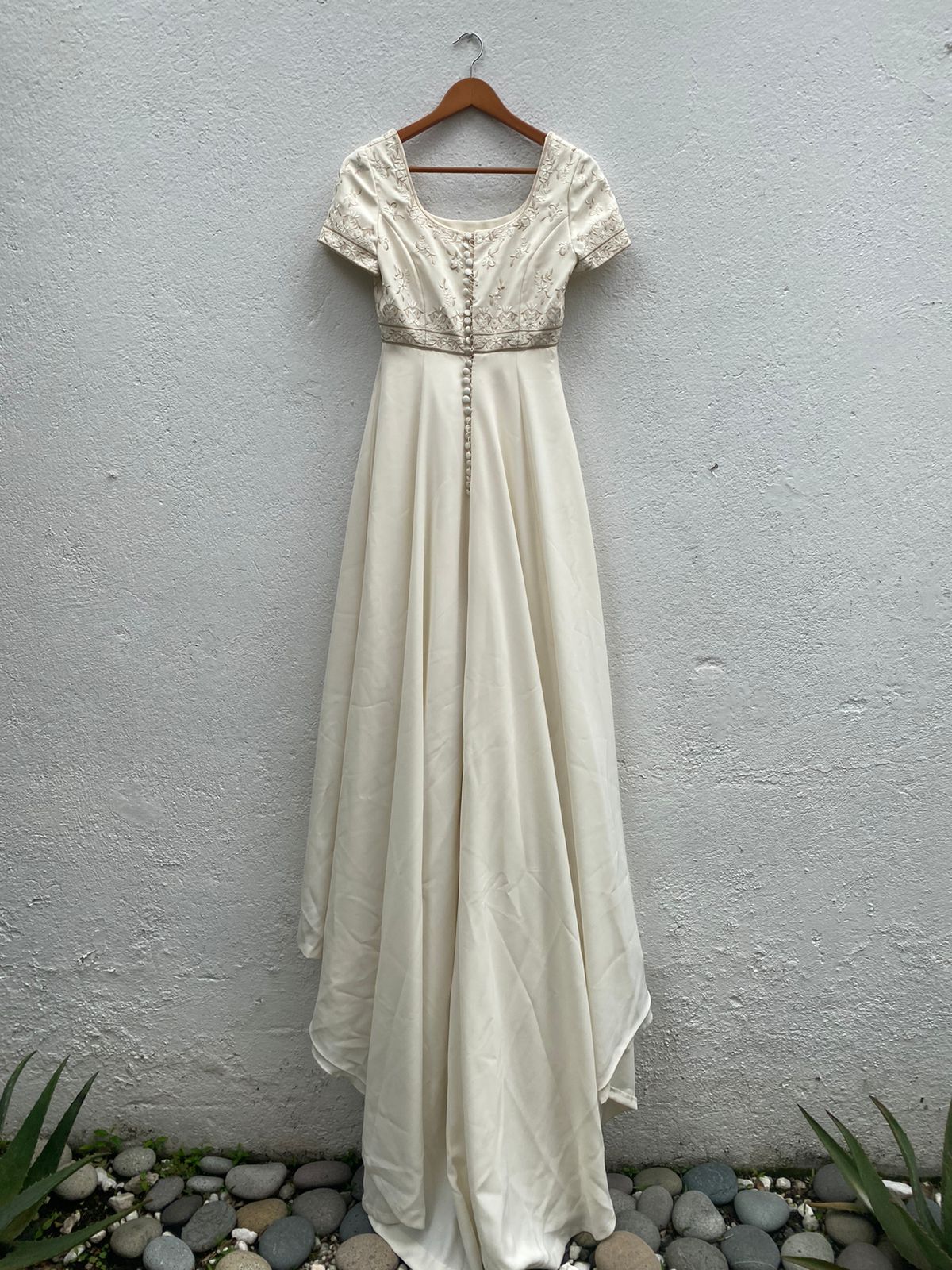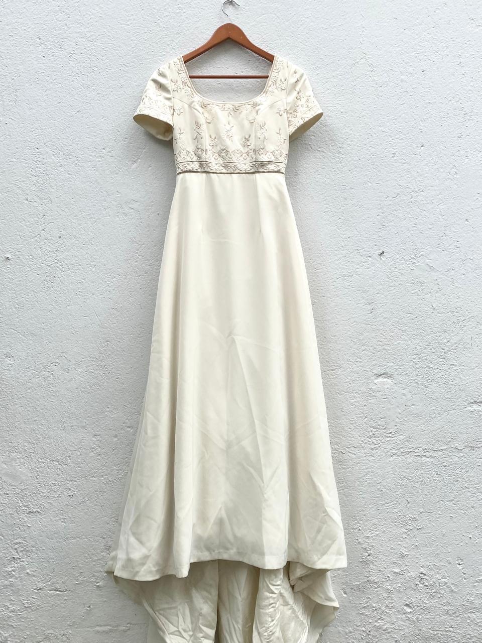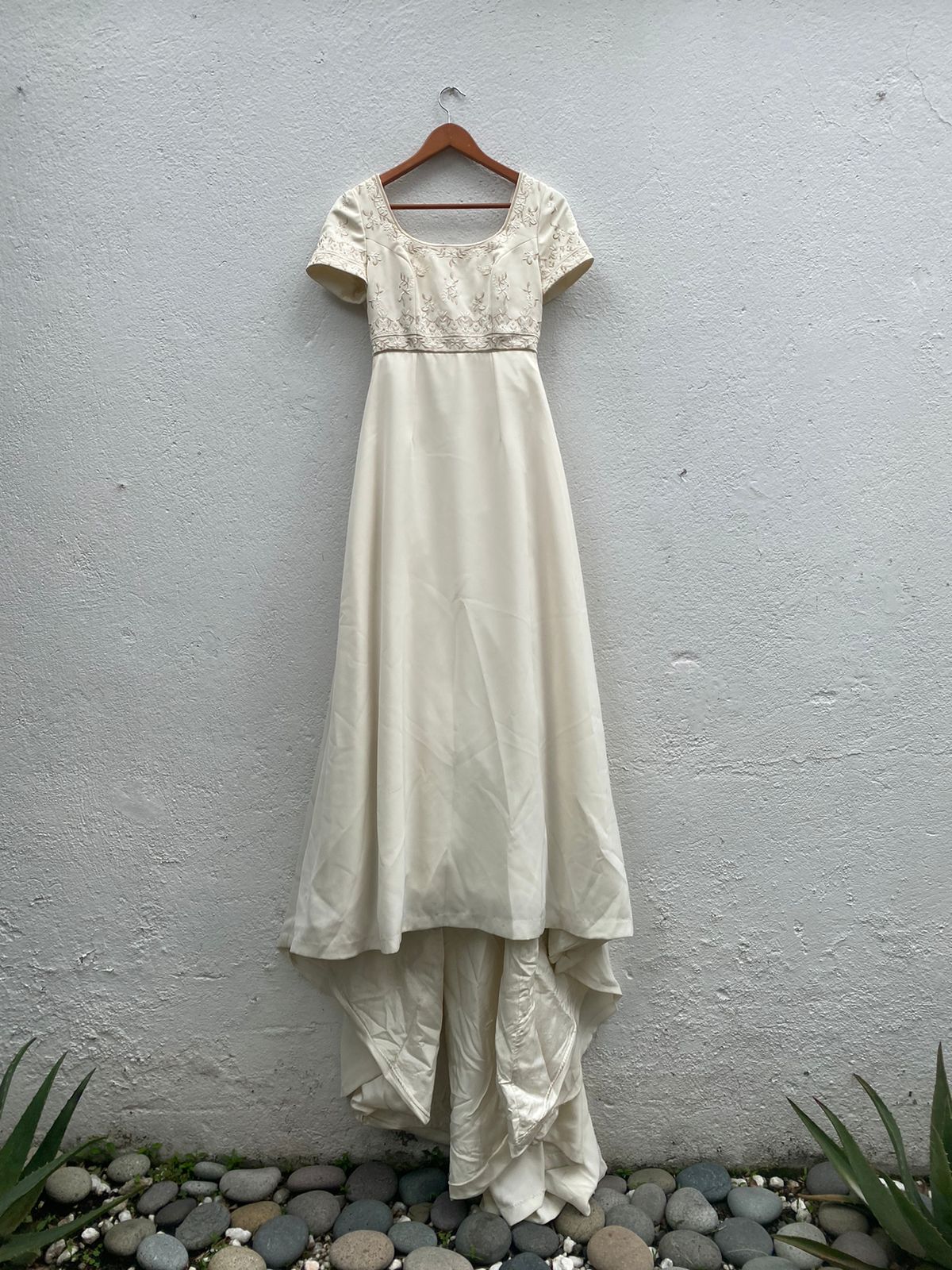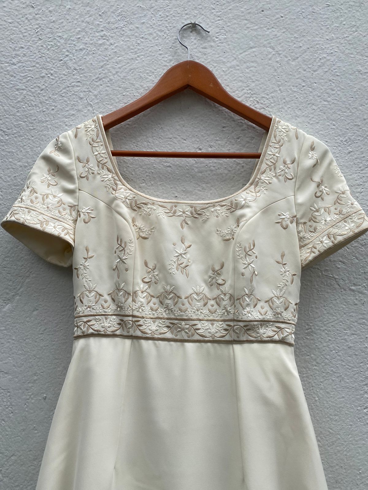 Vestido corte A con bordados en beige en la parte superior. Una sola puesta. Excelentes condiciones