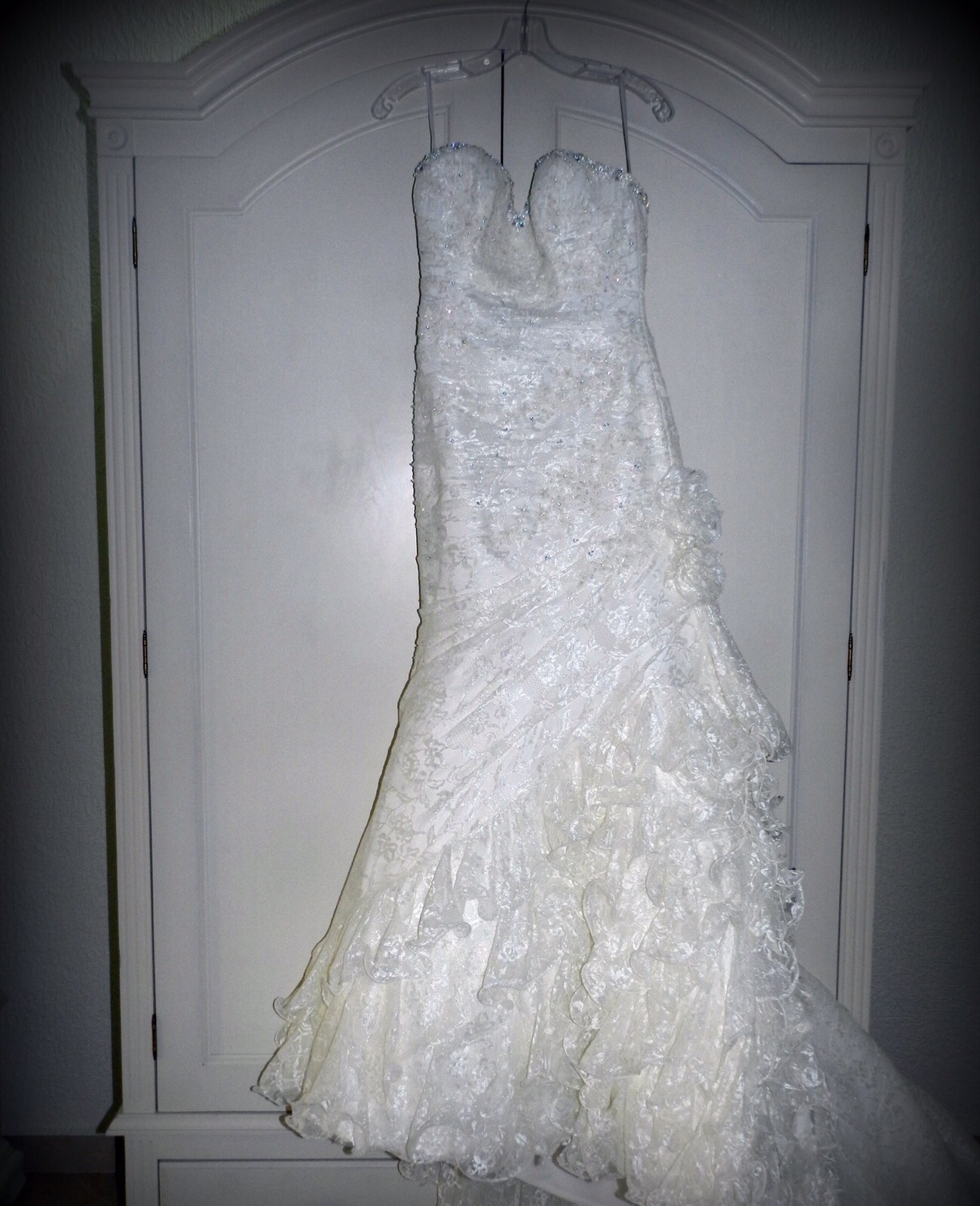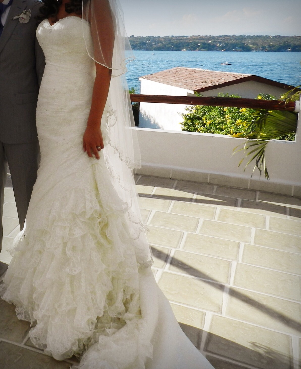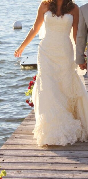 Vestido de novia del diseñador Antonio Nieves, comprado en Novias de España, talla 8 en estraple ajustable, con escote en forma de corazón, corte sirena, con encaje color avory.