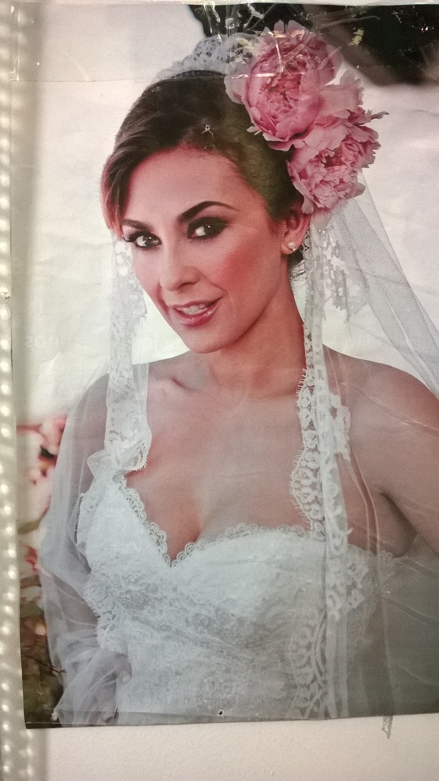 Vestido del diseñador Oleg Casini, silueta sirena, color Ivory, comprado en Las Vegas, tiene un broche en la parte de atrás para agarrar la cola. Hermosa tela. También tengo mantilla, ramo de rosas naturales Pichellina, zapatos Westies #4.5, fondo para que se abra el vestido y tocado.